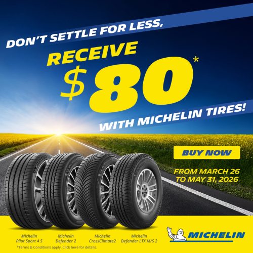 Get $80 via Reward Card or Virtual Account after online submission on purchases of four (4) new BFGoodrich passenger or light truck tires. Offer valid 3/26/26 – 5/31/26. See www.BFGoodrichTires.com for complete details. Void where prohibited.